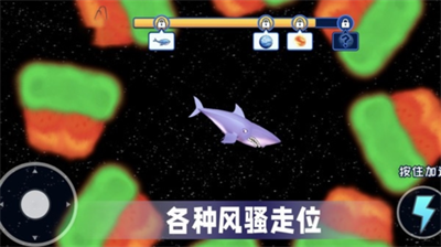 深海吞噬进化之旅免广告畅玩版是一款创新海洋太空双场景的生存进化手游,采用3D渲染技术打造沉浸式生态环境。玩家将操控初始形态的幼年鲨鱼,在光影交错的海洋世界展开生存挑战,通过智能锁定系统精准捕食浮游生物,积累进化能量突破成长瓶颈。