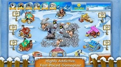 游戏包含95个进阶式关卡设计,每关设置三种星级评价体系。新增冰川运输系统,玩家可操控破冰船开拓海上贸易路线,通过物资交换获取稀有建筑材料。升级版载具系统包含雪地摩托、狗拉雪橇等六种极地交通工具,每种载具对应不同的物资运输效率。