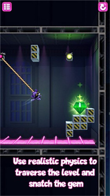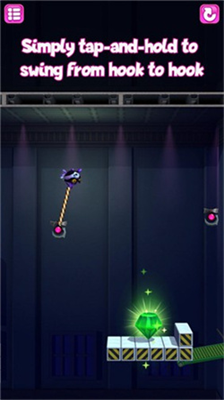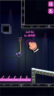 在墙面反弹时点击屏幕可触发蹬墙跳,该技巧能突破常规移动距离限制。连续摆荡中保持节奏可叠加速度加成,适合用于需要快速穿越的激光阵关卡。针对移动平台类机关,建议预判2-3步行动路线,利用绳索悬挂状态观察机关运行规律。